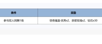 參與雙人同舞一場可以獲得驚奇魔盒-優秀x2、親密玫瑰x2、鉆石x30
