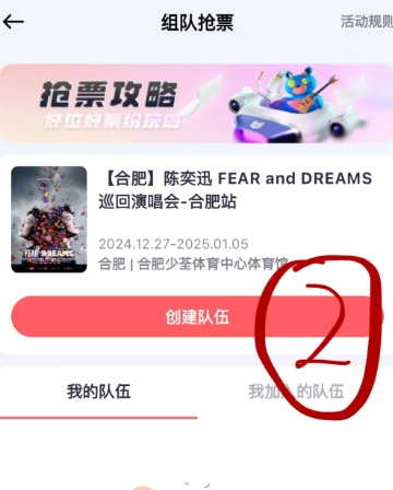 1,紛玩島搶票界面選擇組隊搶票;