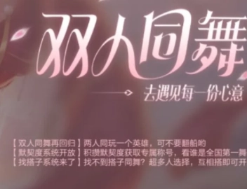 雙人同舞玩法將于5月20日8點開啟,至5月26日結束。上一次雙人共舞模式,是兩名玩家組隊在一條分路與另外兩名玩家對戰。此次雙人共舞模式有所不同,是兩名玩家協同操控同一個英雄,其中一位負責技能按鍵操作,另一位則負責移動按鍵操作。