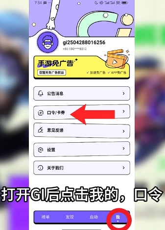 3. 打開GI,接著點擊“我的”——“口令”。