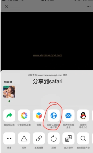 2,點(diǎn)擊右上角分享至safari 瀏覽器;