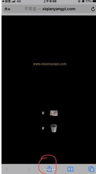 3,點(diǎn)擊下方“分享”(即隔空投送對(duì)應(yīng)的圖標(biāo))