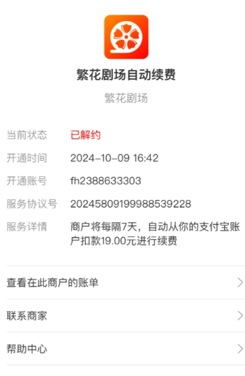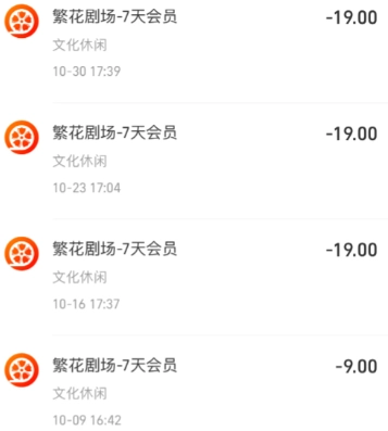 先說這七天會員,19塊的價格就已經(jīng)很離譜了。但更離譜的是它的自動續(xù)費設置,收款賬戶在支付寶或者app商店顯示的并非《繁花》,而是一家科技公司。要是你不仔細查看扣費記錄,壓根兒想不到它每周還會自動扣除19元。