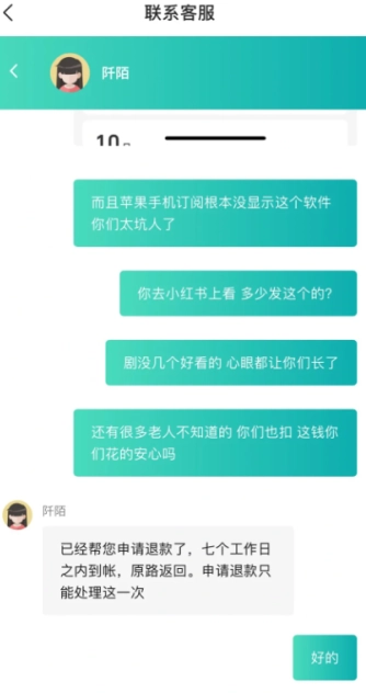下載之后,提示得開通會員才能完整觀看,于是我就充值了。可之后我沒再使用相關服務,卻一直被自動續(xù)費,而且完全沒有任何提醒。還讓我自行去訂閱處關閉,可問題是在訂閱里面根本找不到該從哪里關閉。