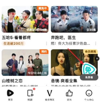 在騰訊 APP 里,如圖 1 所示,首頁右下角有一個標著“免”字的圖標,點擊此圖標觀看廣告,就能獲取免費觀看時長。