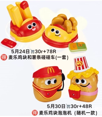5月30日,于麥當勞,只要任意消費滿30元,再額外支付48元,就能獲得麥樂雞塊泡泡機(款式隨機)。