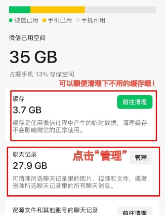 4. 點擊“管理”,還能順手清理一下無用的緩存呢!