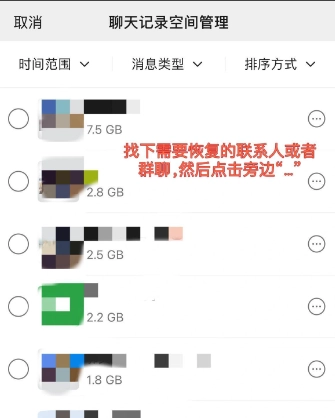 5. 尋找需要恢復的聯系人或群聊,接著點擊其旁邊的三個點。