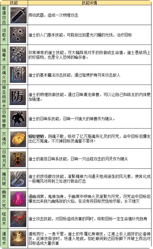 《龍跡之城》道士職業及道士英雄技能一覽: