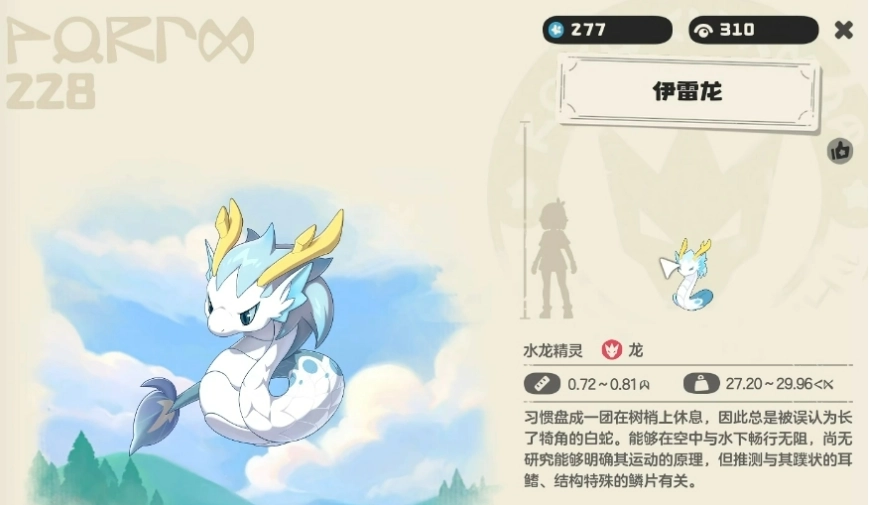 接下來要說的是伊雷龍,這可是一只不容小覷的龍系精靈。伊雷龍初始為幼體形態,然而它的成長潛力堪稱無限,一旦等級達到40級,便能蛻變為強大的伊蘭亞龍。其捕捉方式略有特別,現階段伊雷龍無法在野外直接捕捉,玩家唯有通過擊敗首領boss才有機會獲得。在“咕嘟咕嘟淺灘的魔力之源”周邊,戰勝特定的boss后,你就會得到伊雷龍的指引,從而進入戰斗展開捕捉。在捕捉時,有個小技巧能讓戰斗變得輕松些——利用幽冥眼精靈的暈眩技能使伊雷龍陷入麻痹狀態,接著用搖籃曲技能加以控制,讓它無法釋放技能,如此便能穩穩捕獲。另外,伊雷龍的技能相當強勁,特別是“升龍咆哮”技能,幾乎能夠橫掃一眾對手。當伊雷龍進化成伊蘭亞龍后,它的輸出能力會大幅提升,在戰斗中近乎所向無敵,無疑會成為你戰斗時的絕佳助力。