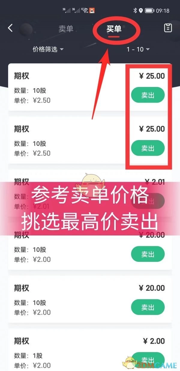 3、仔細查看賣單價格,按照賣單價格出售期權,防止因價格過低而遭受損失。