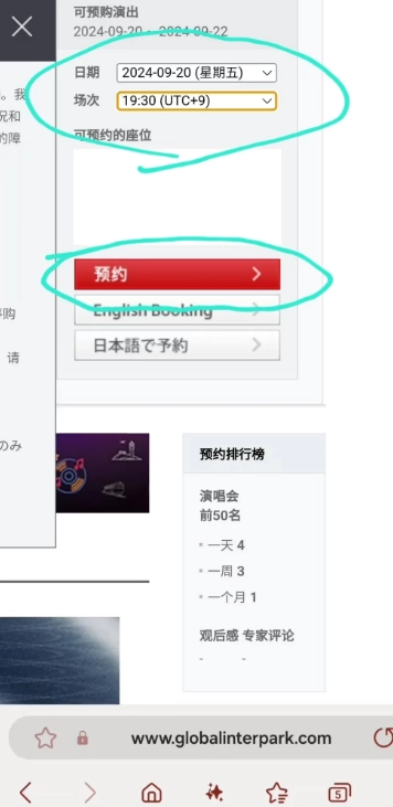2. 登錄itp,在開票前1分鐘,打開你打算搶購的演唱會頁面,并持續刷新。待時間一到,在窗口右側會出現購票按鈕。選擇好日期與時間后,點擊中文的【預訂】,此時會彈出一個新窗口,后續的操作步驟都將在這個新窗口中完成。