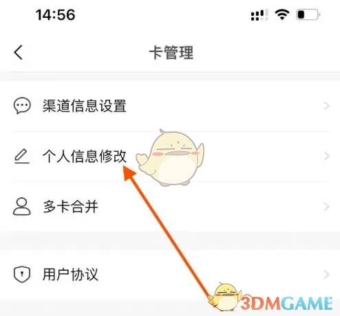 3、來到卡管理頁面,點擊【個人信息修改】選項。