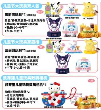 本次肯德基六一兒童節(jié)玩具共計(jì)6個(gè)。其中,凱蒂貓兒童玩具數(shù)碼相機(jī)為單獨(dú)套餐,而其余五個(gè)玩具不可挑選,均為隨機(jī)贈(zèng)送。下面就來詳細(xì)看看吧: