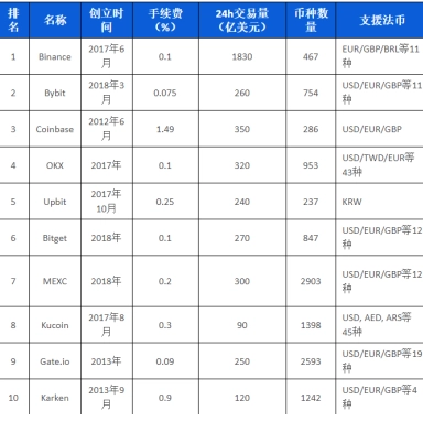 根據CMC顯示,評分名列前十的交易所如下: