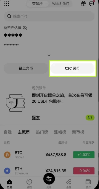 1. 進入歐意App首頁,輕點【C2C買幣】-【快捷買幣】-【購買】,搜尋想要購買的幣種,比如 USDT ,填入購買金額或者數量,接著【選擇支付方式】(可選擇銀行卡、支付寶或者微信支付),最后點擊【下一步】。