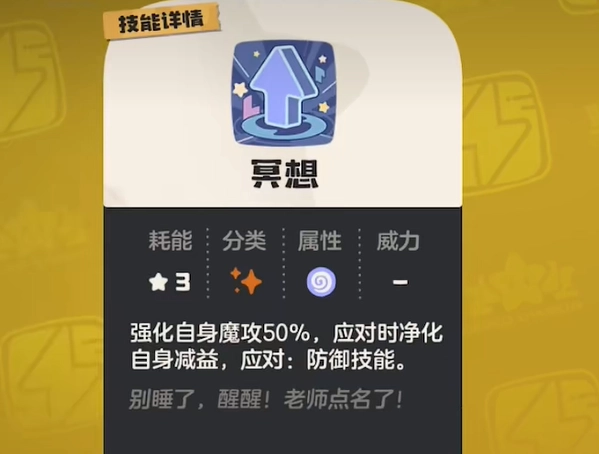 最后,粉粉星憑借“冥想”技能,獲得了強(qiáng)大的自我強(qiáng)化能力。在施展冥想時(shí),粉粉星能夠增強(qiáng)自身魔攻,而且當(dāng)遭遇防御類技能時(shí),還可清除自身的負(fù)面狀態(tài)。如此一來,在面對(duì)長時(shí)間的戰(zhàn)斗或是高防御的敵人時(shí),粉粉星就擁有了相當(dāng)不錯(cuò)的應(yīng)對(duì)手段。