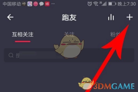 3、進入“跑友”界面,點擊右上角的“+”符號。