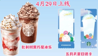 4從4月29日開始,前往星巴克門店,只要任意購買一杯草莓芝心爆珠星冰樂或者比利時黑巧星冰樂,就有機會獲取一張【星冰樂天空透卡】(兩款透卡隨機發放),而且一單內購買數量越多,獲得的透卡也就越多!