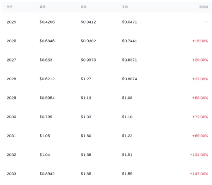 2在2025年,Pi Network預(yù)計(jì)平均價(jià)格會達(dá)到0.6471美元,最高價(jià)為0.8412美元,最低價(jià)則是0.4206美元。要是以當(dāng)下0.6473美元的價(jià)格買入Pi Network ,到2025年,您存在獲得0收益率的可能性。