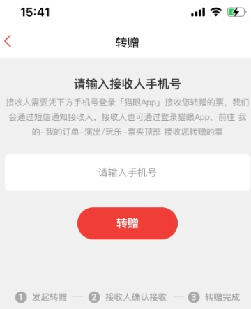 目前所知,操作僅能在貓眼APP內進行,接受轉贈的一方同樣需要擁有貓眼賬號。