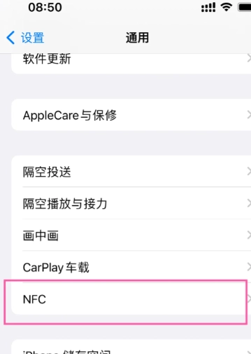 2. 接下來,在設置中查找“通用”選項,進入后找到“關于本機”,接著向下滑動頁面,找到“NFC”,務必保證NFC功能處于開啟狀態。