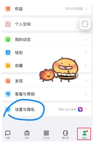 1. 開(kāi)啟釘釘,點(diǎn)擊【我的】—【設(shè)置與隱私】