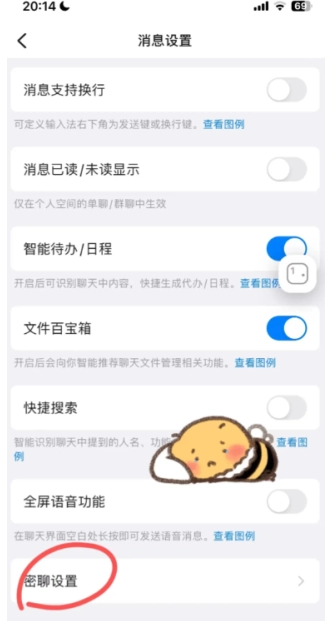 3. 一直滑到頁(yè)面最底部,便能直接看到【密聊設(shè)置】,點(diǎn)擊它即可進(jìn)入。