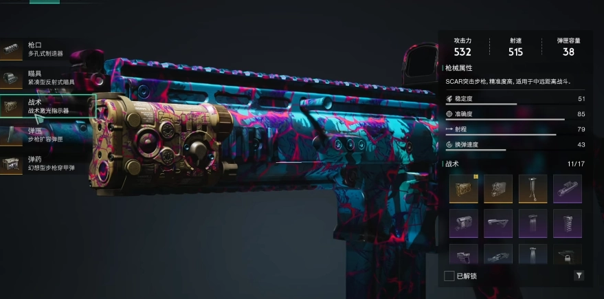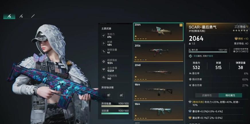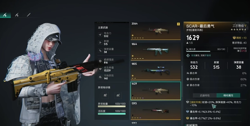 最后的勇氣是一把極為強力的突擊步槍,其核心機制為碎彈玩法。當成功命中敵人4次后,下一次攻擊便會觸發碎彈效果。值得注意的是,暴擊在這個機制里等同于兩次命中。所以,提升暴擊率成為了搭配模組的重中之重。在武器精校環節,選擇暴擊率能夠提高碎彈的觸發頻率。武器模組裝配爆裂彈頭,它不但能夠穩定觸發碎彈效果,還能進一步提升碎彈的暴擊率,從而讓傷害得到顯著提升。與此同時,搭配金色彈夾可增加彈夾容量并提升射速,進而增強武器的續航與輸出能力。