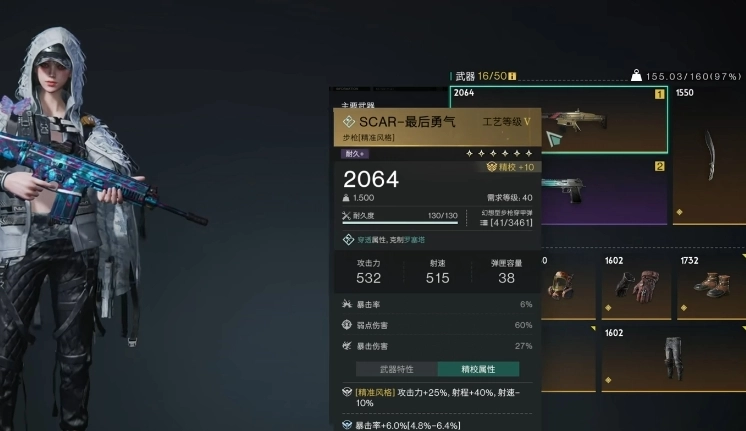 防具套裝提供了獵鷹套與孤狼套這兩種可選方案。獵鷹套憑借穩定的暴擊率提升以及全方位的傷害加成而聞名,不僅能夠增加彈夾容量與生命值,還具備耐力翻滾消耗增益效果,十分契合長時間作戰的需求,在各類場景中都能維持穩定的輸出,建議在整個過程中都攜帶。而孤狼套盡管擁有高額的傷害加成,然而在面對 BOSS 時,其層數會有所下降,致使傷害逐步降低,故而它更適用于清理小怪。
