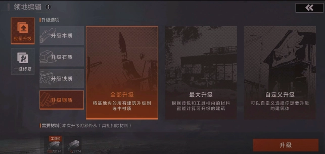 游戲初期,應優先收集建筑材料,這樣能有效滿足領地柜的建筑維護與升級需求。可依據游戲進程及自身需求,合理規劃建筑升級。當資源充足時,選擇批量提升建筑等級,既能有效強化防御攻勢,又能節省逐個升級所耗費的時間。