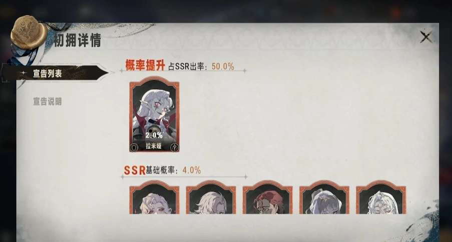 命運宣告道具至關重要,其主要用途是在游戲卡池中執(zhí)行抽取角色等操作。玩家憑借命運宣告,能夠在常駐的蒼裔的蘇生池子里抽取角色。此池中有不同品質的眷屬等待抽取,各個等級的眷屬均有被抽到的概率。該池設置了保底機制,每進行60次命運宣告,就必定會得到一名SSR品質的角色。一旦玩家獲取SSR眷屬,保底規(guī)則便會重新計數(shù)。而且,累計命運宣告的次數(shù),玩家還有機會獲得抽取實物獎勵,獎品相當豐厚。