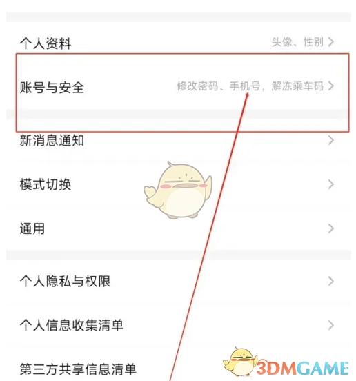 2. 在設置頁面里點擊“賬號與安全”