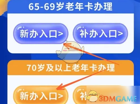 4、在此處挑選要辦理老年卡的年齡段,接著點擊【新辦入口】,隨后就能依照指引完成辦理流程。