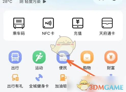 1. 于手機上開啟天府通,進入主頁面后,點擊【便民】選項。