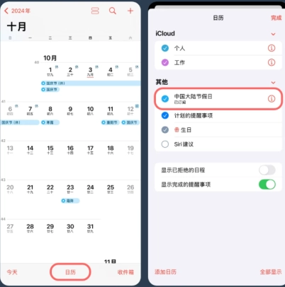 1. 檢查自己的日歷,確保已訂閱“中國大陸節假日”。