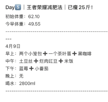 我晚上選擇不吃飯,下班到家要是覺得餓,就直接打開王者榮耀。玩的時候可別停下來,別給大腦留思考的空當,一局結束馬上開啟下一局。如此一來,既沒時間點外賣,也想不起自己正餓著,更不會去琢磨上一局究竟是怎么輸掉的,自然也就不會生氣啦!唯一會停下的情況,就是中途去洗個澡。等玩累了回過神來,就已經可以準備睡覺了。這樣第二天早上起來,體重肯定會下降!