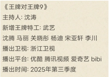 《王牌對王牌9》預計會于2025年第三季度和觀眾見面。