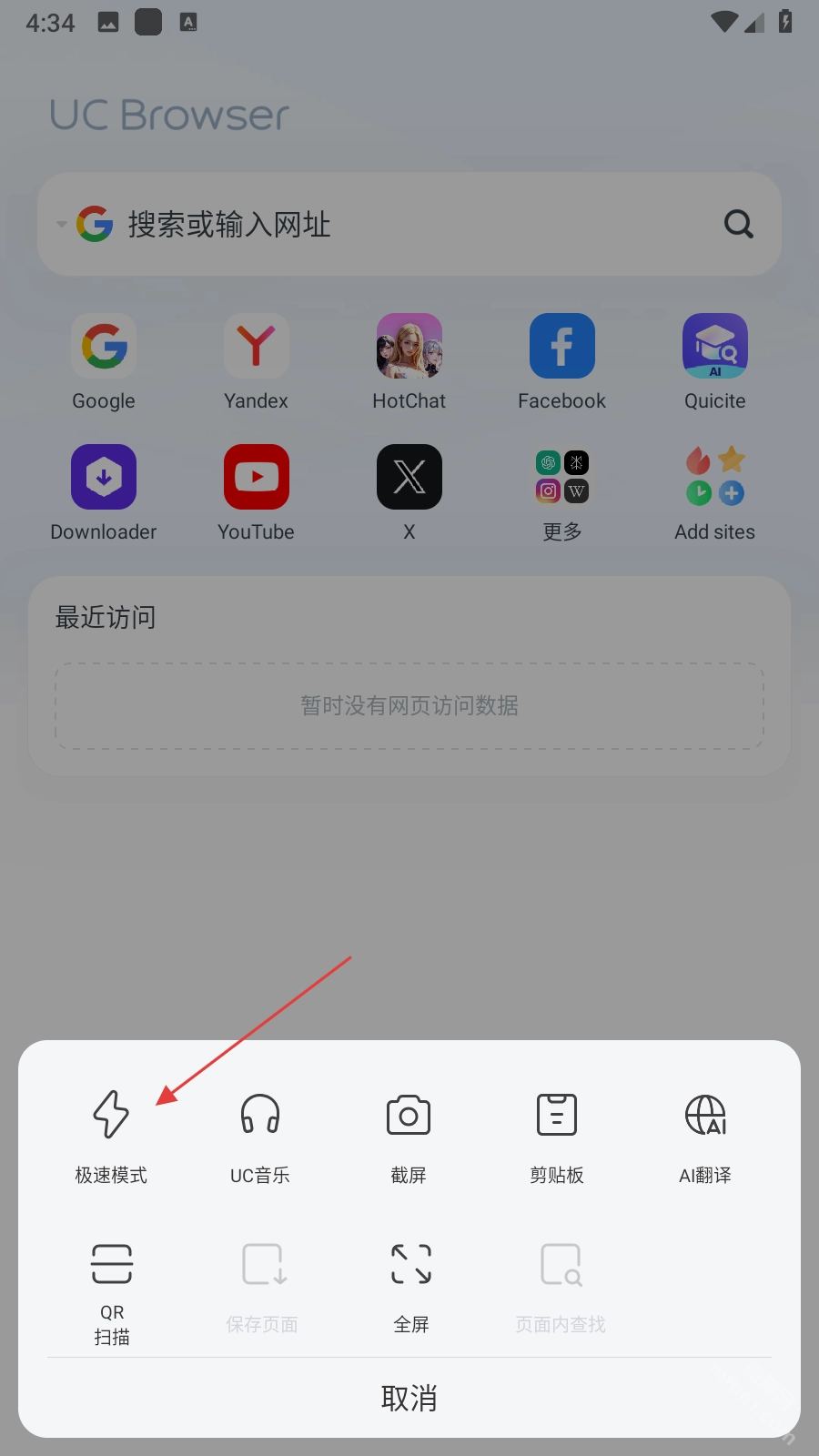 uc瀏覽器國際版設置極速模式