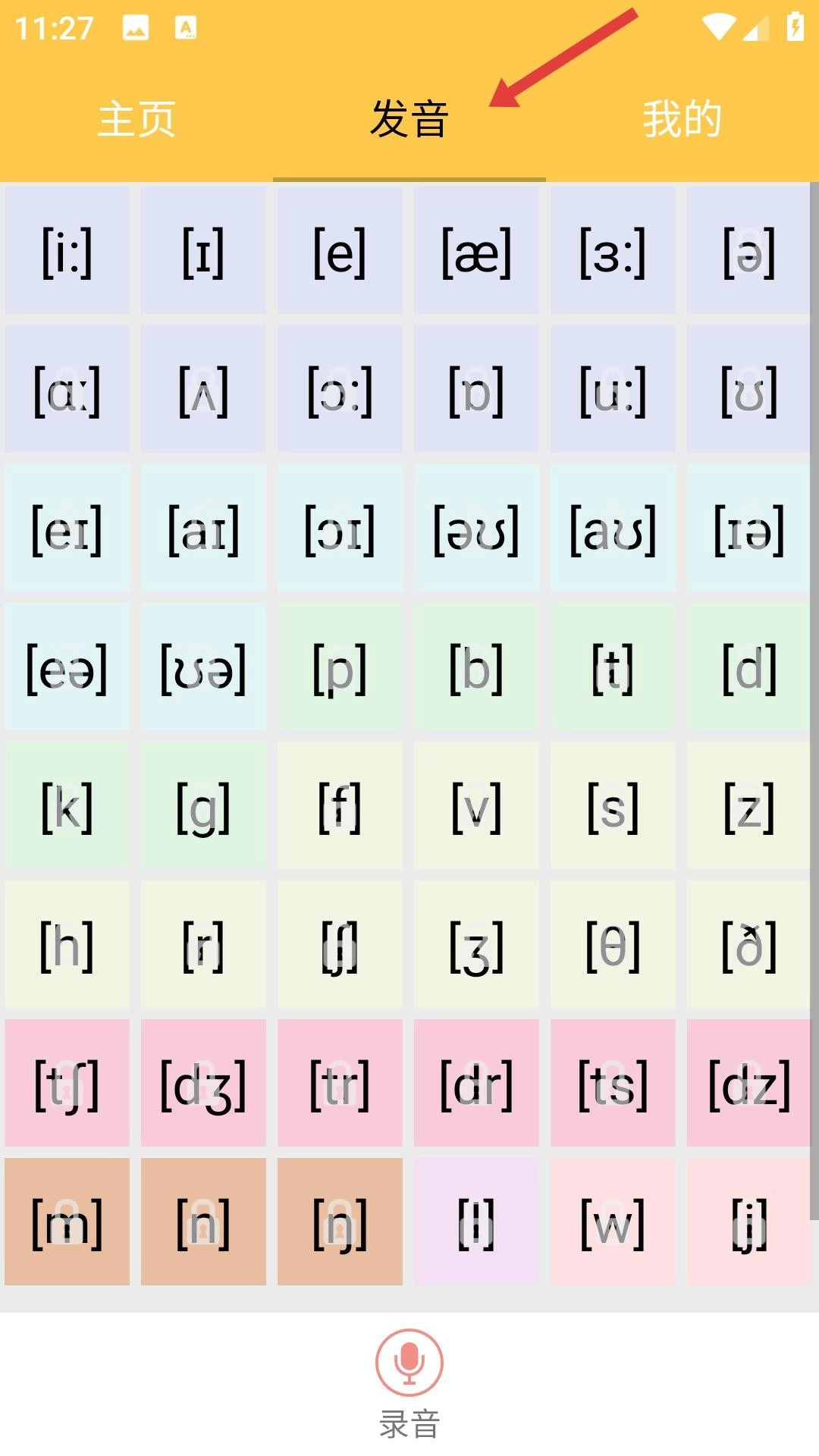 2、發(fā)音頁面展示英語國際音標(biāo),點擊任意音標(biāo)即可學(xué)習(xí),還配備視頻學(xué)習(xí)等多種訓(xùn)練方式;