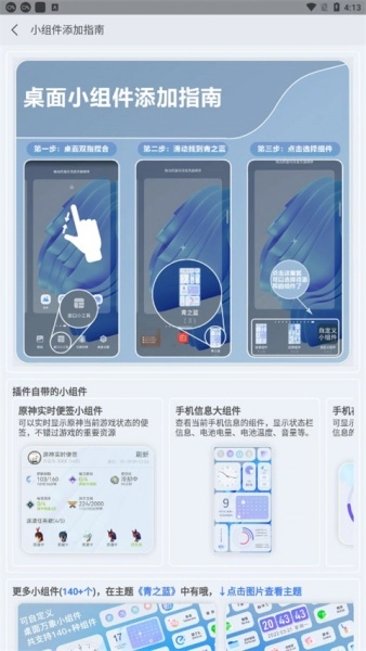 2、桌面小組件,在桌面添加各類實(shí)用的小組件;