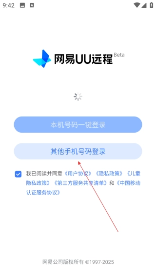2、同意協(xié)議后,點擊【其他手機登錄】。