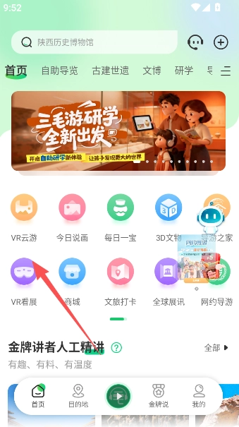 4、登錄成功后點擊首頁,挑選你需要使用的業務功能,例如VR云游。