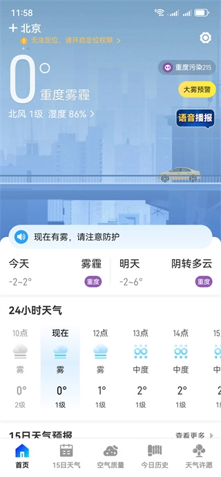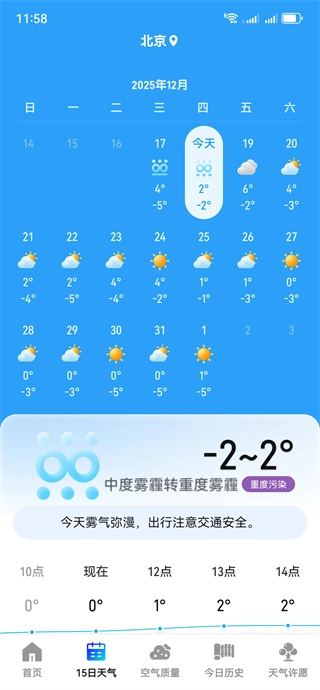 3、切換至"15日天氣",如圖,可以查看你15日的天氣預報。