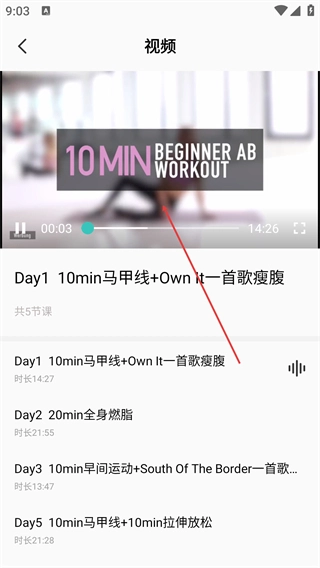 4、在運動視頻詳情頁,可查看視頻內容進行跟練。