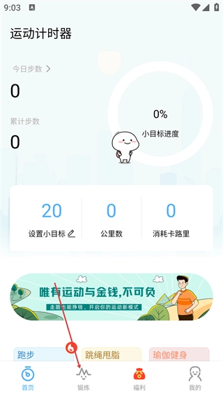 2、在首頁點擊底部【鍛煉】按鈕,可進入一起運動頁面。