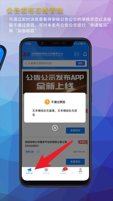 2、對公告狀態進行實時跟蹤,自動推送審核進度提醒,確保用戶能夠隨時掌握最新進展。