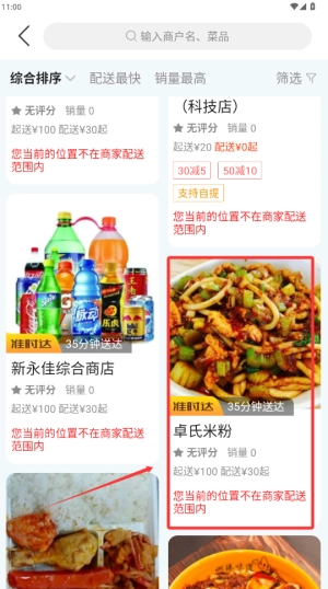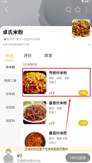3、在商家列表,選擇心儀的商家,點(diǎn)擊進(jìn)入商家的餐品列表。