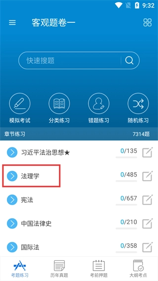 1、進入【客觀題卷一】界面,點擊【法理學】,進入相關模塊。