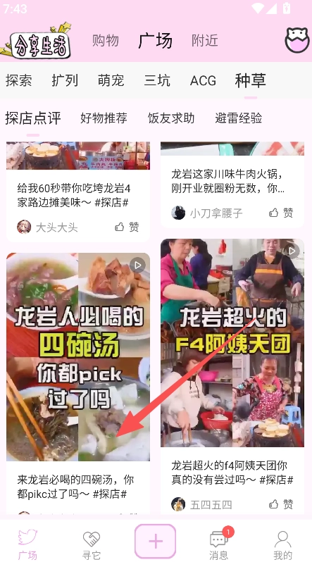 2、瀏覽探店點評或好物推薦板塊下的展示帖子。